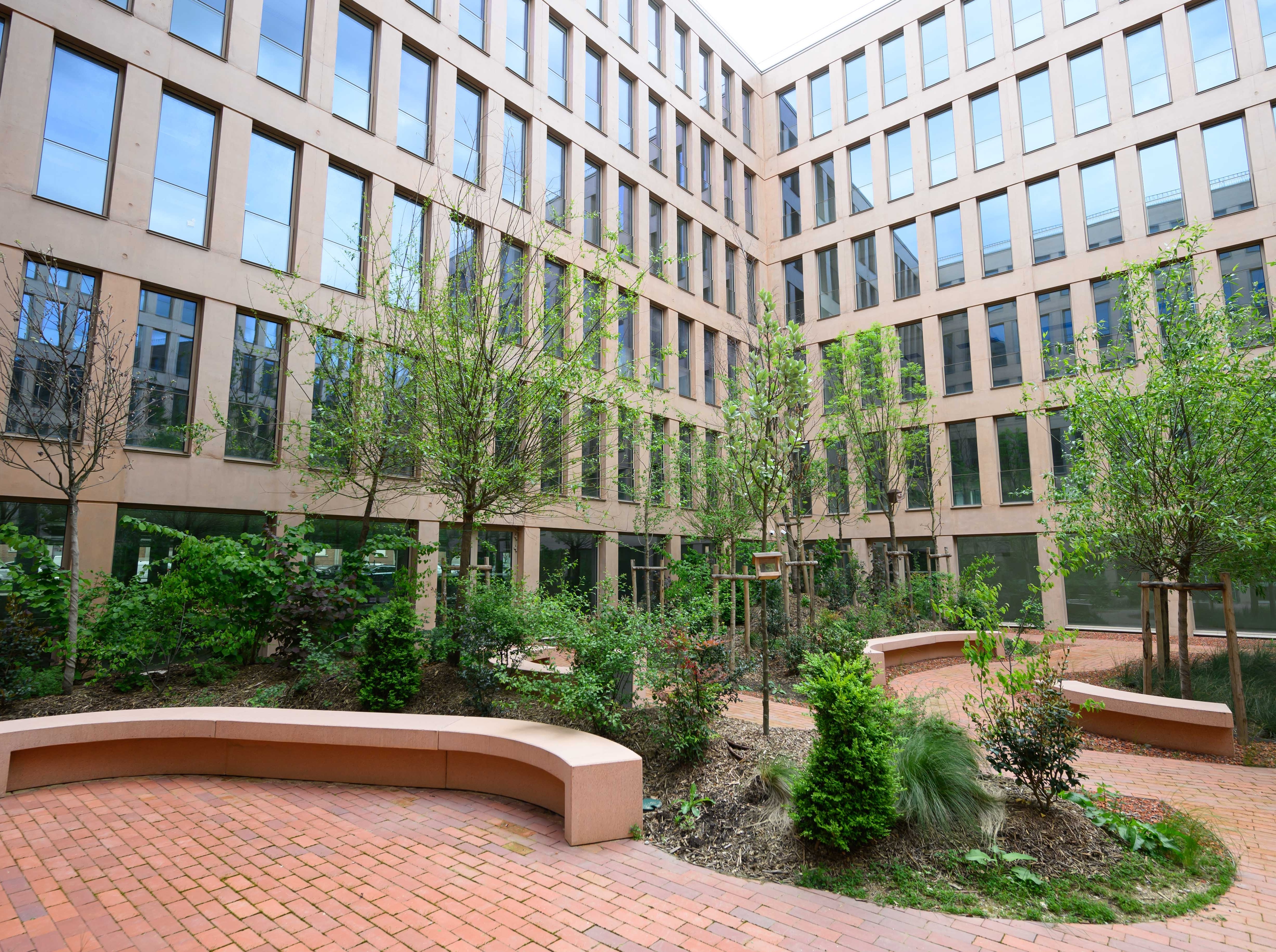 Fruit d’une opération de requalification urbaine, le campus de l’Aqueduc a été construit sur une parcelle déjà artificialisée, accueillant auparavant un actif tertiaire obsolète de 20.800 m². L’opération a consisté à la fois à créer davantage de surface en densifiant le bâti et à donner plus de place à la nature dans un souci de bien-être des occupants et de préservation de la biodiversité. Les espaces en rez-de-chaussée sont ouverts sur 2 500 m² d’espaces végétalisés extérieurs (plus de 5 000 plantes, arbustes et arbres plantés), tandis que, depuis les espaces de bureaux, 1 200 m² de terrasses sont également accessibles.