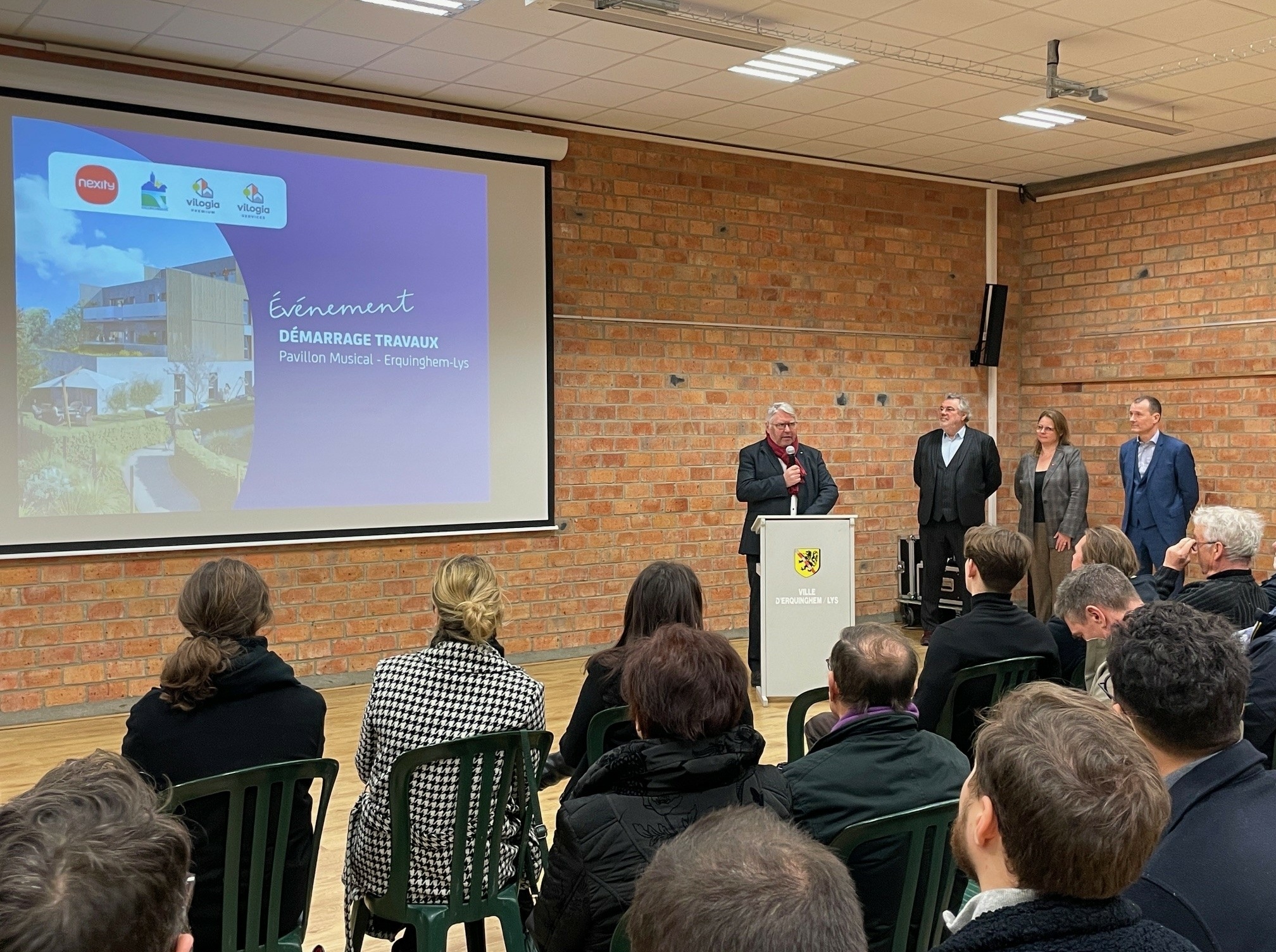 Ce mardi 30 janvier 2024, la filiale immobilier résidentiel Nord de Nexity a annoncé le lancement des travaux de la résidence Pavillon Musical à Erquinghem-Lys, commune intégrante de la Métropole Européenne lilloise. Un programme qui allie performance environnementale et qualité de vie pour une meilleure cohésion sociale. Cet événement était en présence du maire de la ville d’Erquinghem-Lys, Monsieur Alain Bézirard mais aussi des équipes de Vilogia Premium et Vilogia Services.