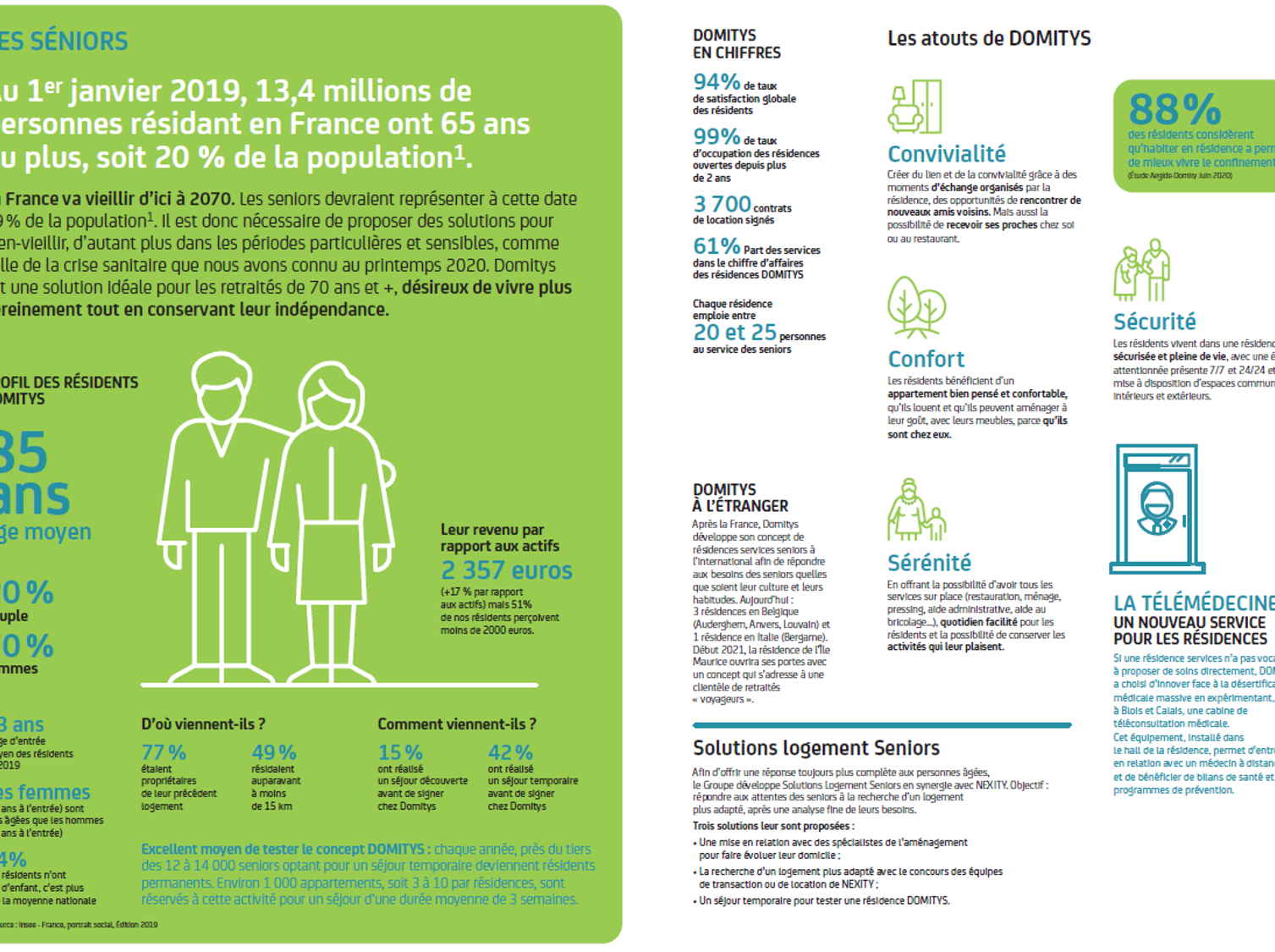 > Télémédecine : Résoudre la problématique des désert médicaux et suivi continu en post-opératoire et en cas de maladie chronique, grâce notamment à une cabine de télémédecine (actuellement en test dans deux résidences Domitys).