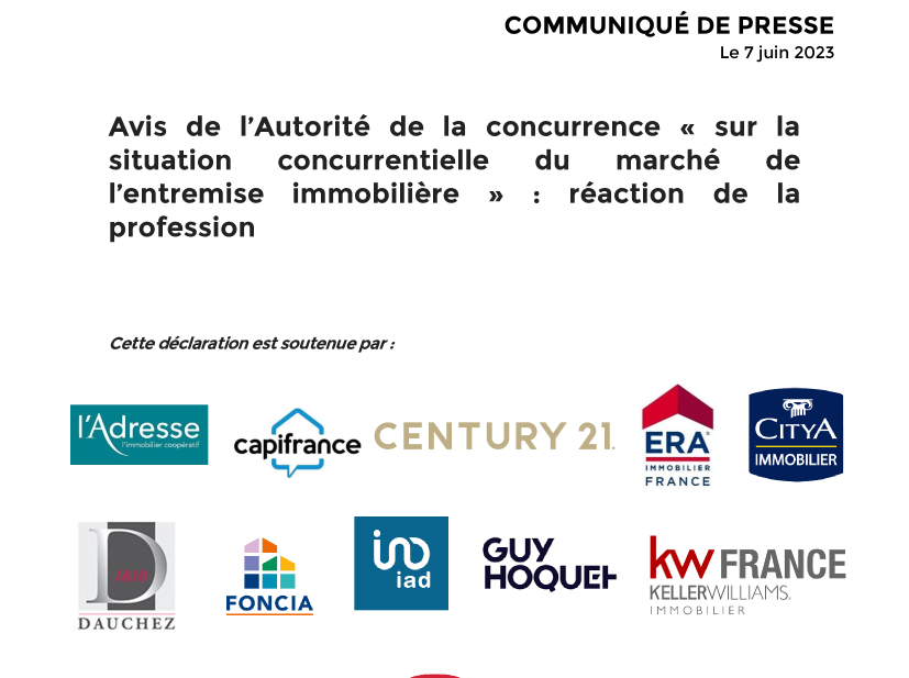 Ce matin, la Fédération Nationale de l’Immobilier, le Syndicat National des Professionnels Immobiliers et l'Union des Syndicats de l'Immobilier, soutenus par toute la profession et notamment par Nexity, ont réagi à l’avis de l’Autorité de la concurrence « sur la situation concurrentielle du marché de l’entremise immobilière ».