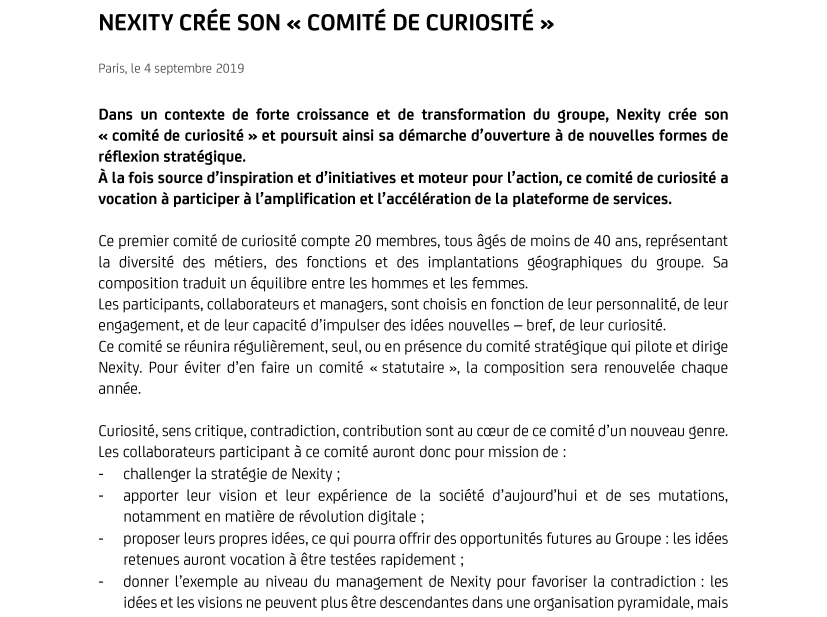 NEXITY CRÉE SON « COMITÉ DE CURIOSITÉ »