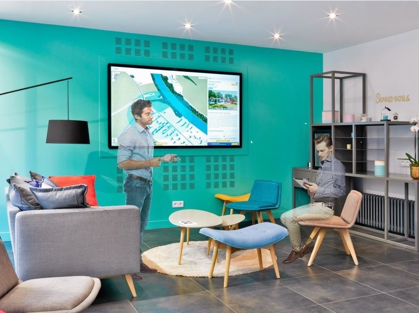 L’agence connectée Nexity du 18 rue Ozenne, est un espace innovant, en rupture avec les agences immobilières traditionnelles. Son dispositif digital est unique sur le marché de l’immobilier, il est intuitif et facilite les échanges entre nos experts et leurs clients. Déployé à l’extérieur et à l’intérieur de l’agence connectée de Toulouse, ce dispositif comprend notamment un écran tactile, une borne Kineti avec notre configurateur pour l’ensemble de nos opérations de logements neufs en cours, et un écran vitrine permettant de présenter nos actualités et nouveautés.