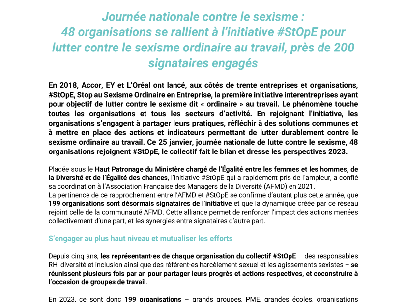 * Chiffres issus de la synthèse du baromètre 2021 de l’initiative #StOpE à retrouver ici