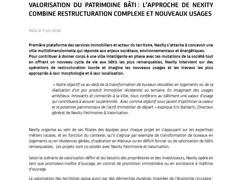 VALORISATION DU PATRIMOINE BÂTI : L’APPROCHE DE NEXITY COMBINE RESTRUCTURATION COMPLEXE ET NOUVEAUX USAGES