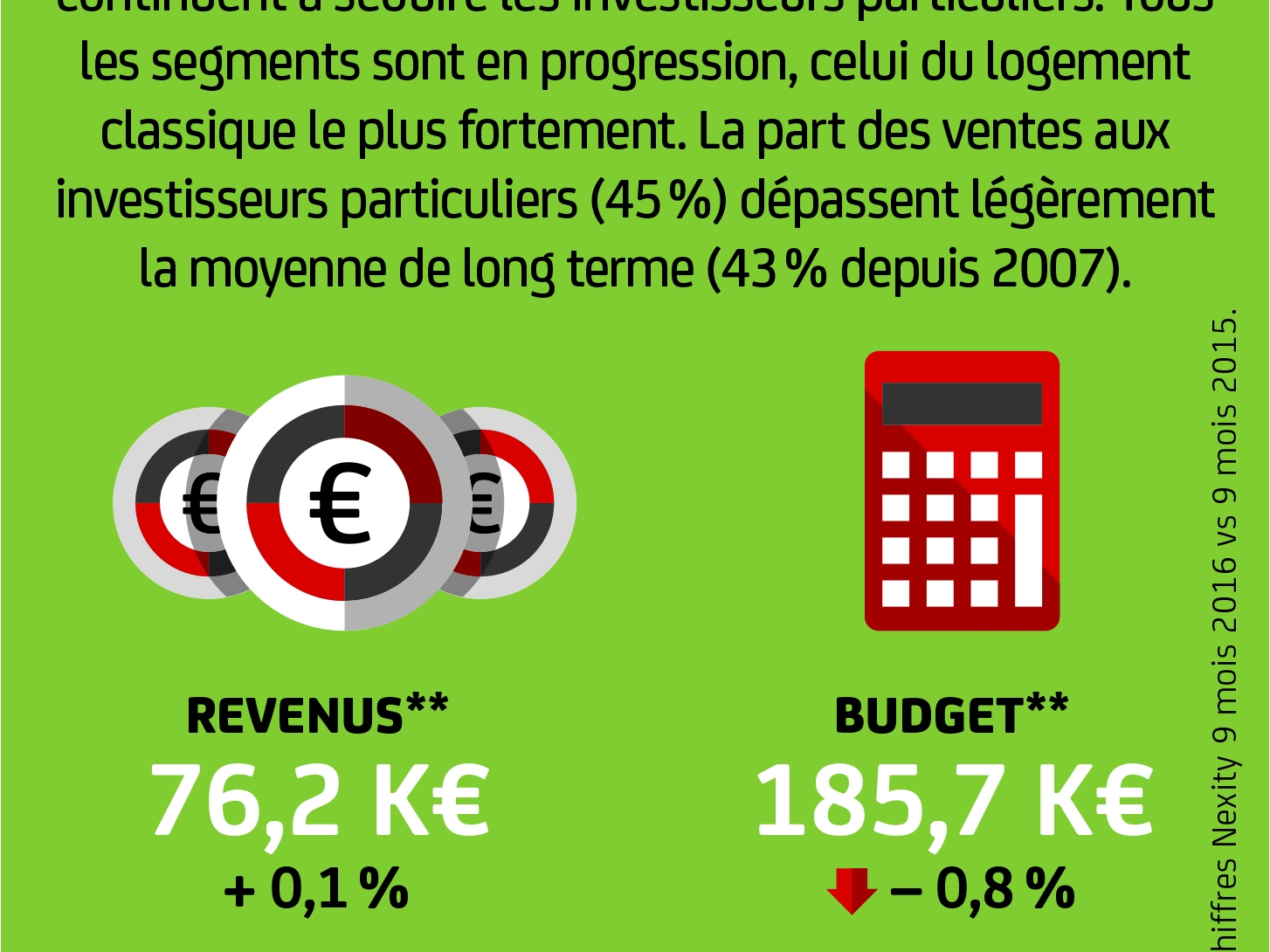 les segments sont en progression, celui du logement classique le plus fortement. La part des ventes aux investisseurs particuliers (45 %) dépassent légèrement la moyenne de long terme (43 % depuis 2007).