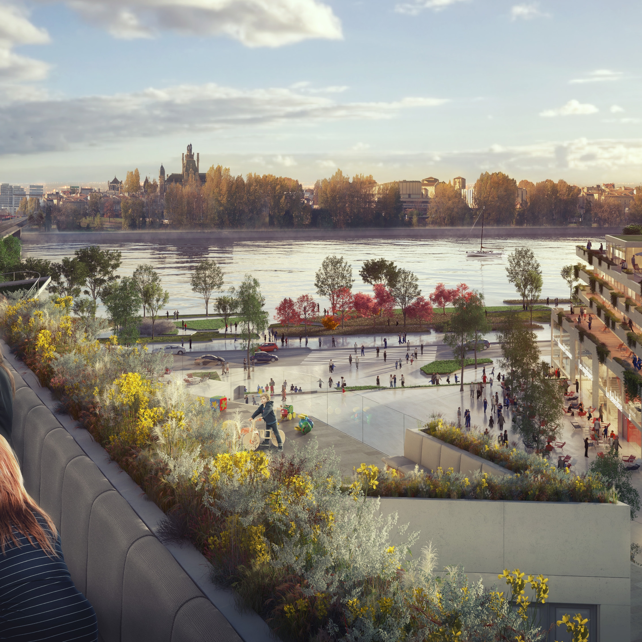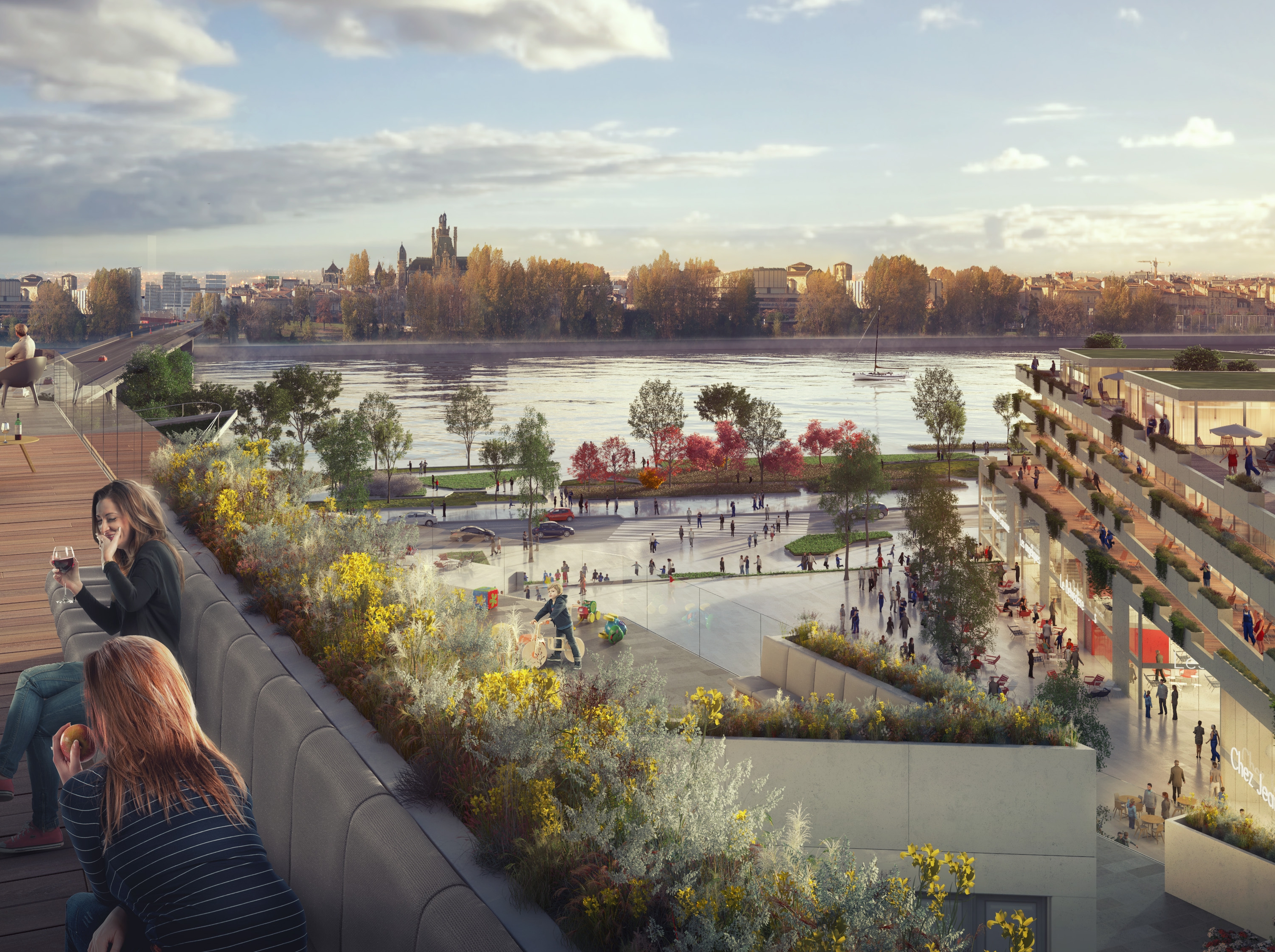 Vue sur la rive gauche et la ville en pierre